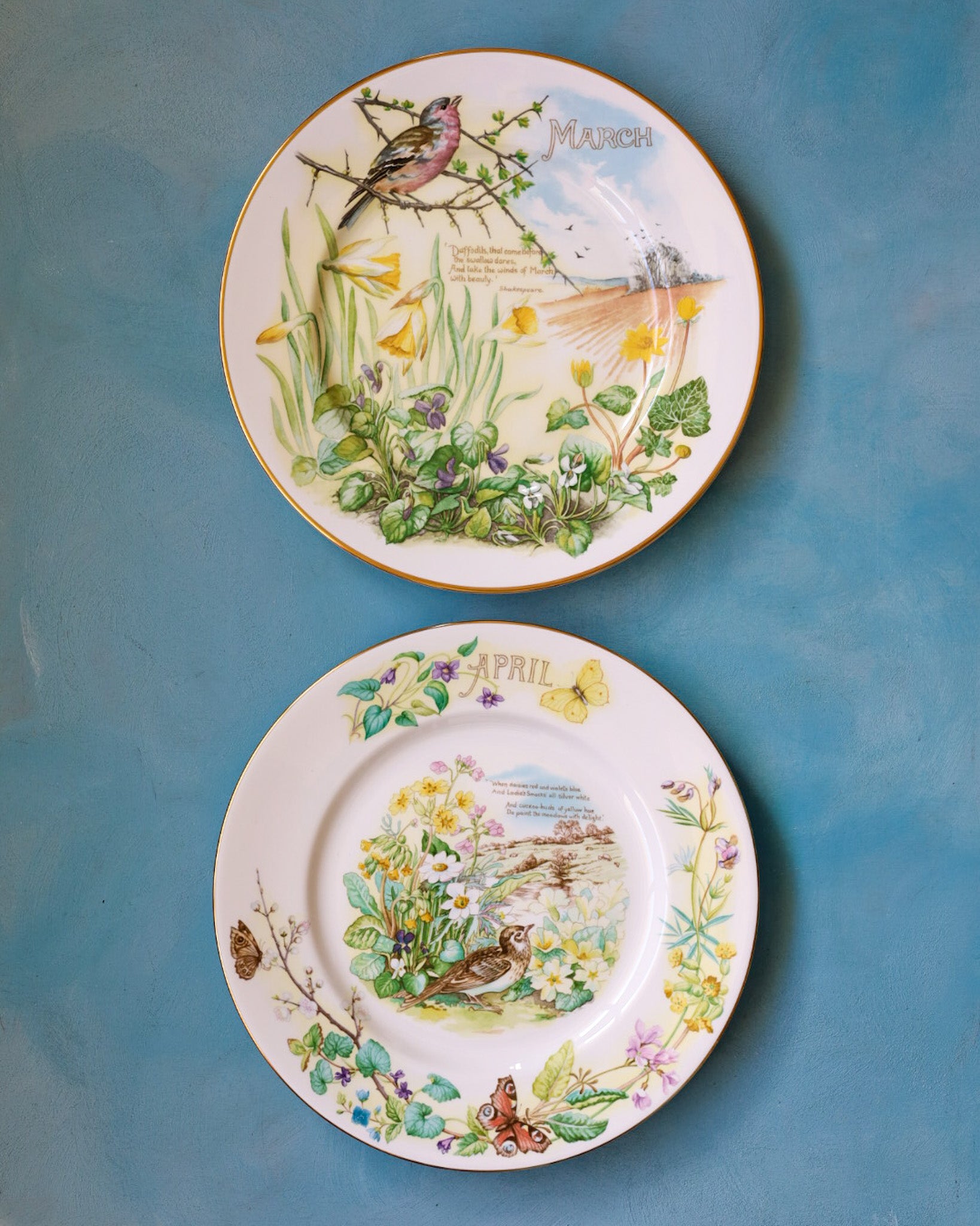 Collezione Completa "I Mesi dell'Anno" – 12 Piatti Decorativi Caverswall in Bone China con Illustrazioni Naturalistiche