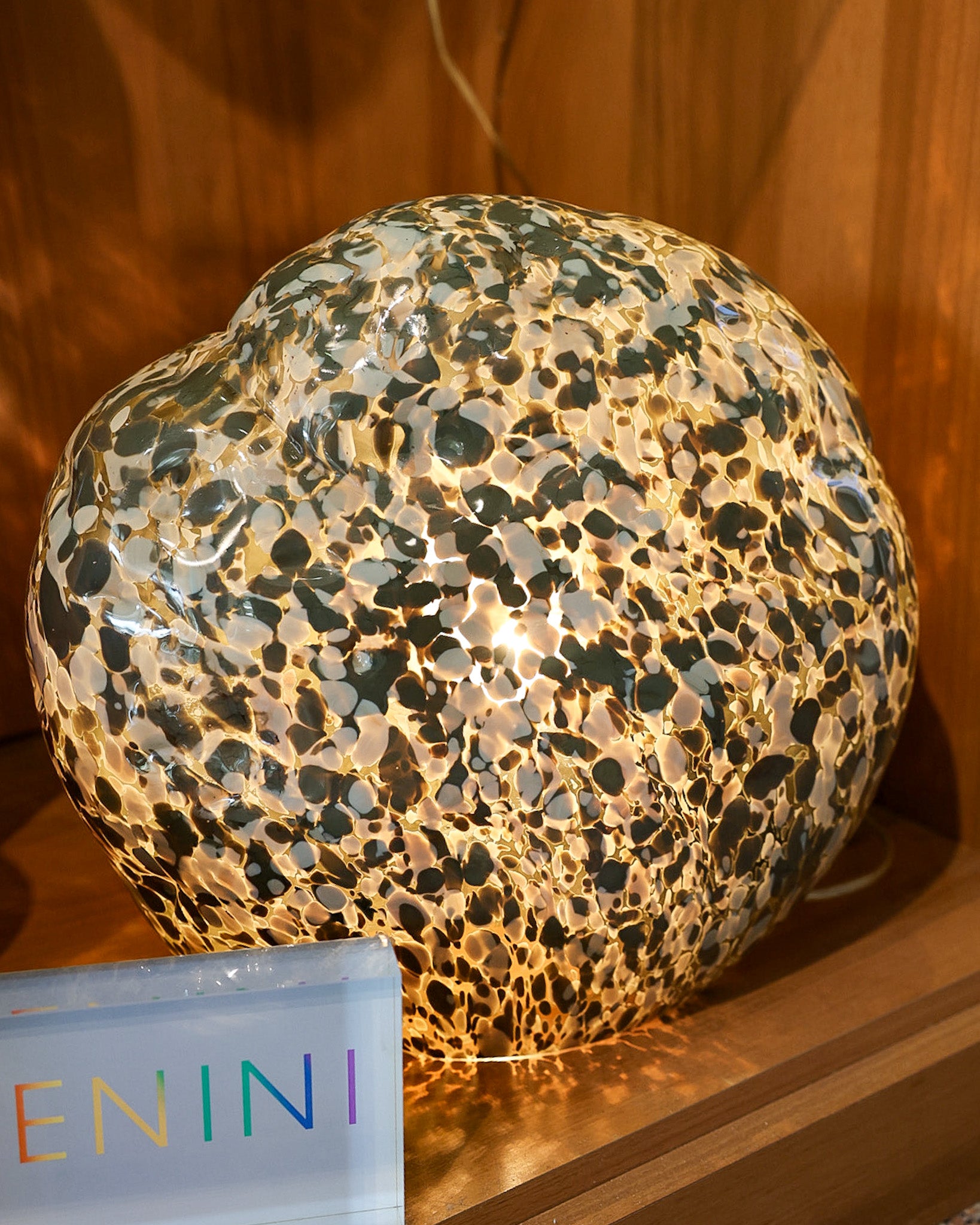 Lampada Venini con luce regolabile forma sasso disegnata da Mimmo Rotella