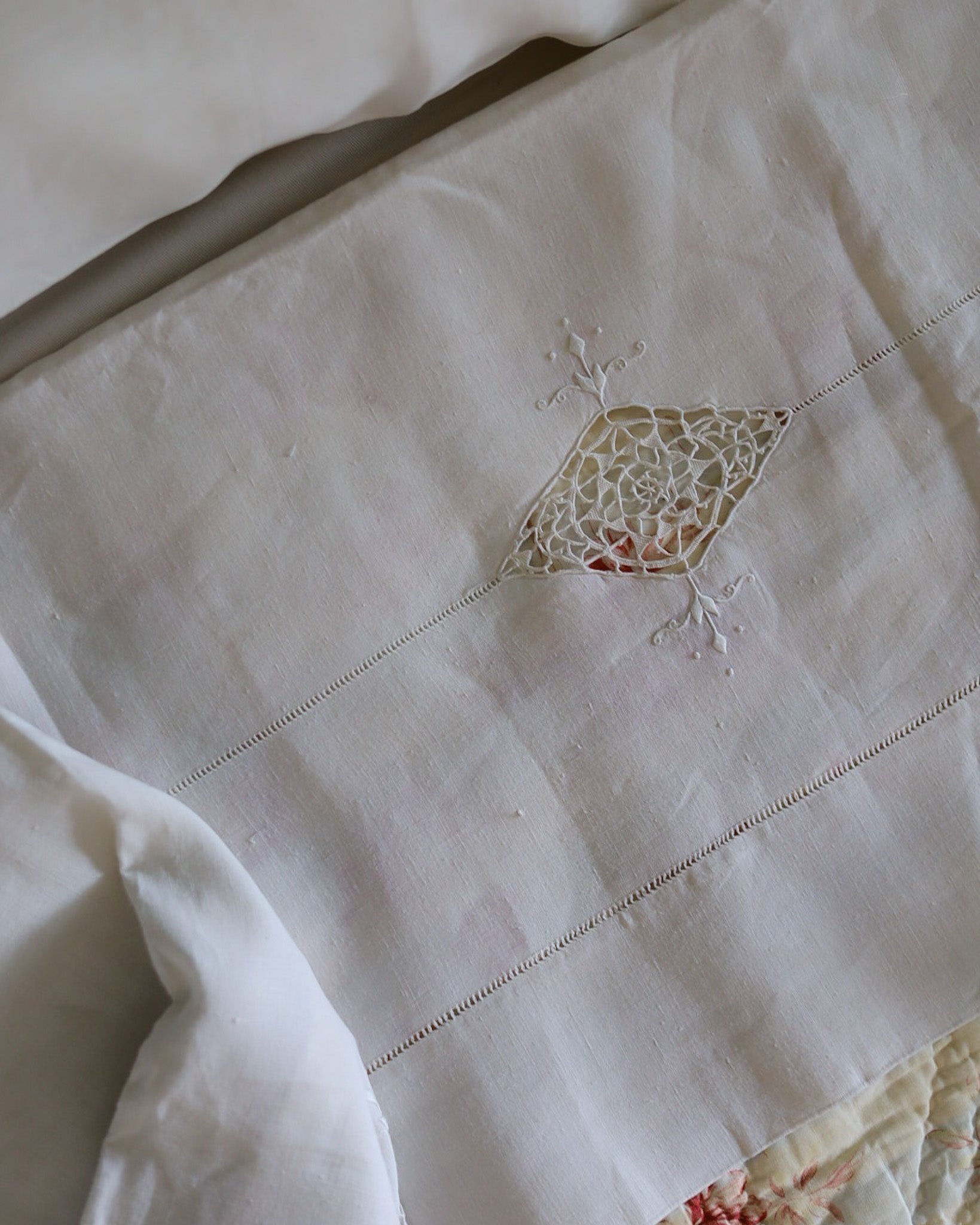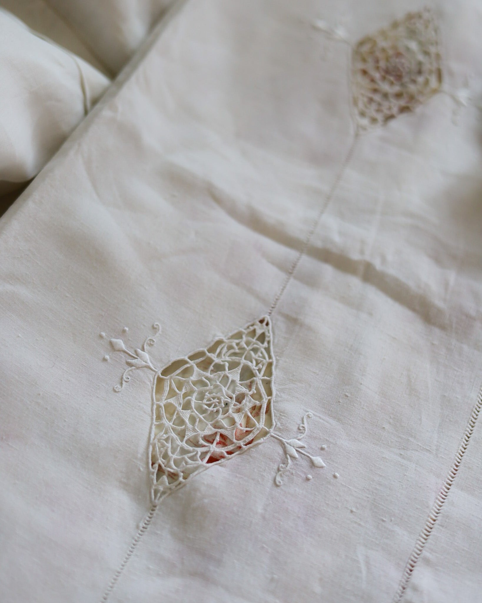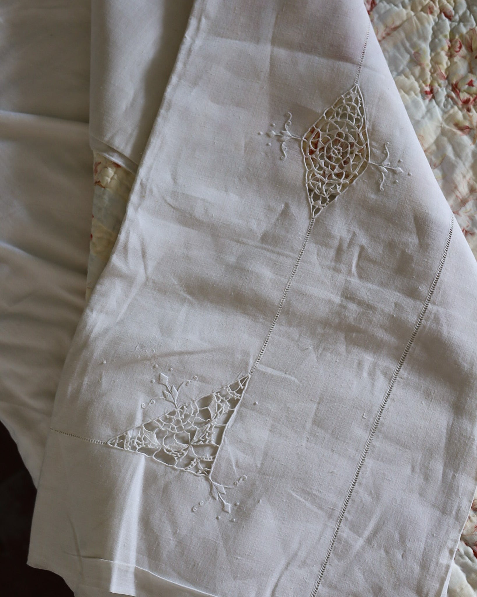 Stupendo lenzuolo matrimoniale antico in lino antico