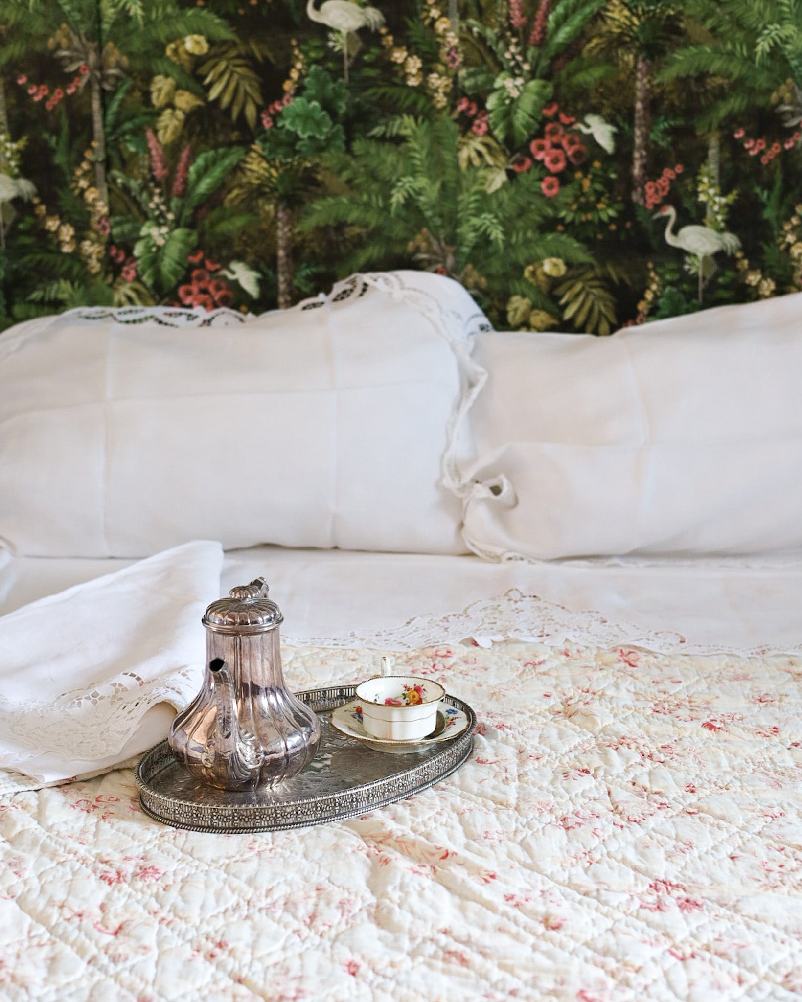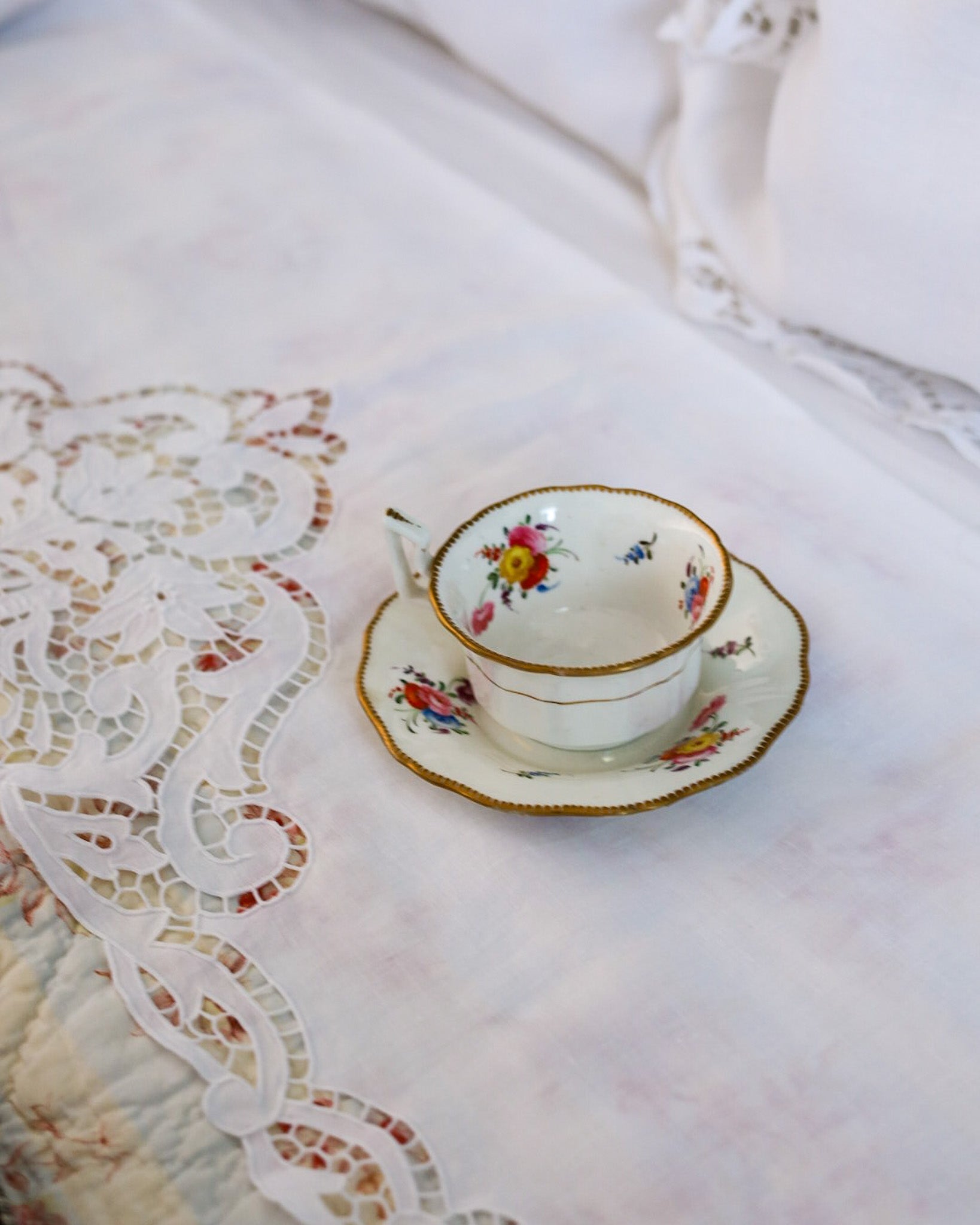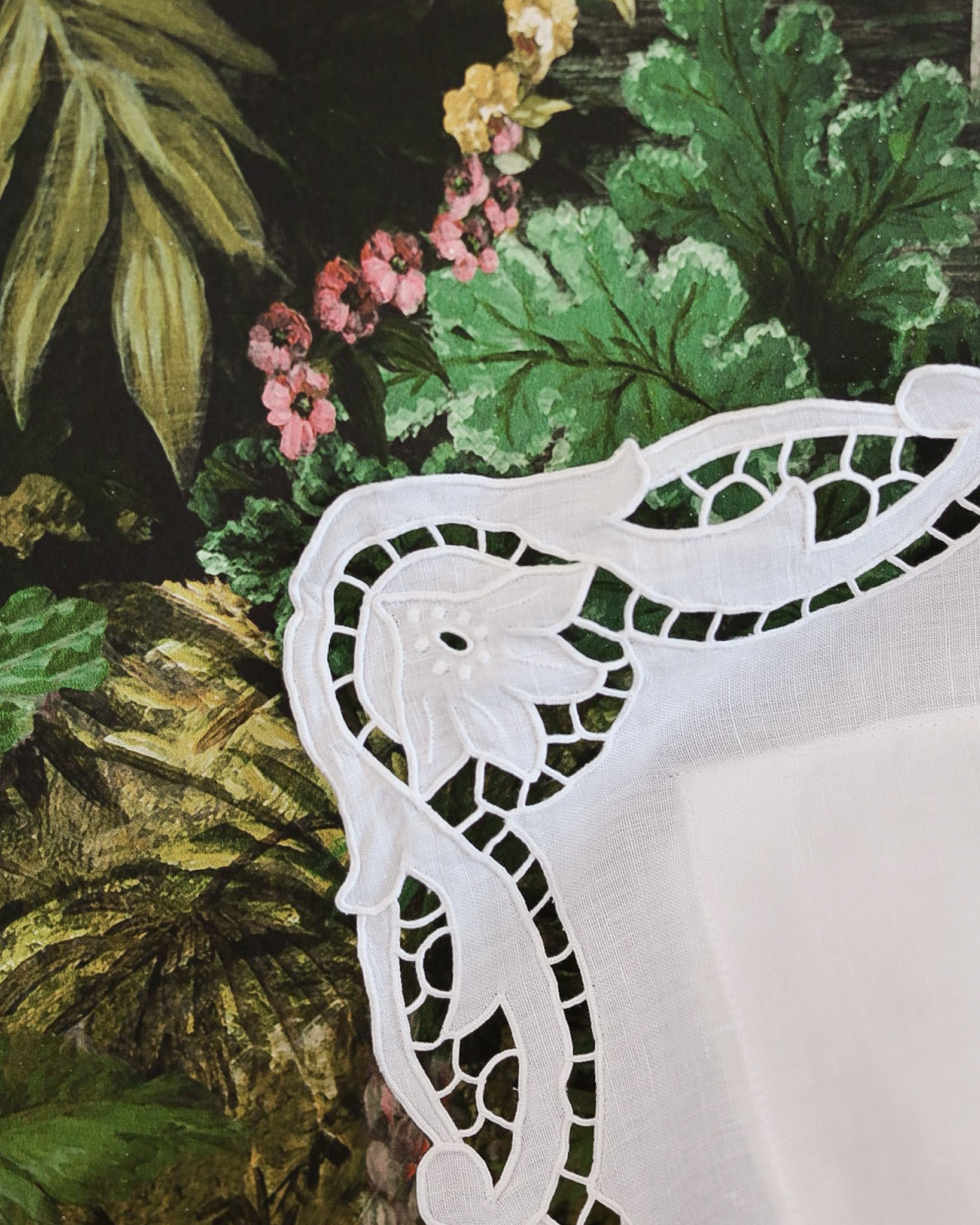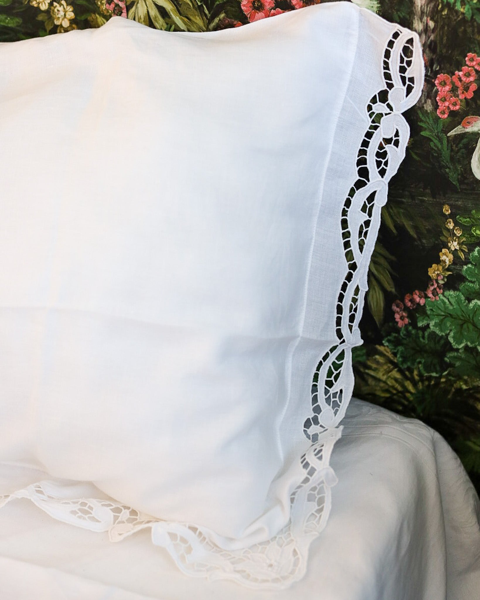 Lenzuolo matrimoniale in lino con intaglio stile liberty