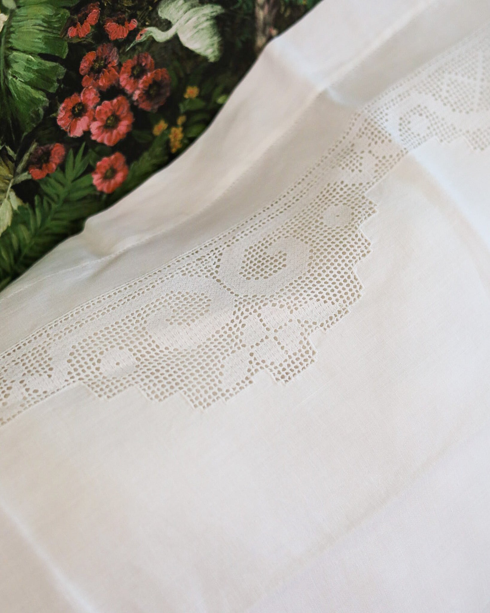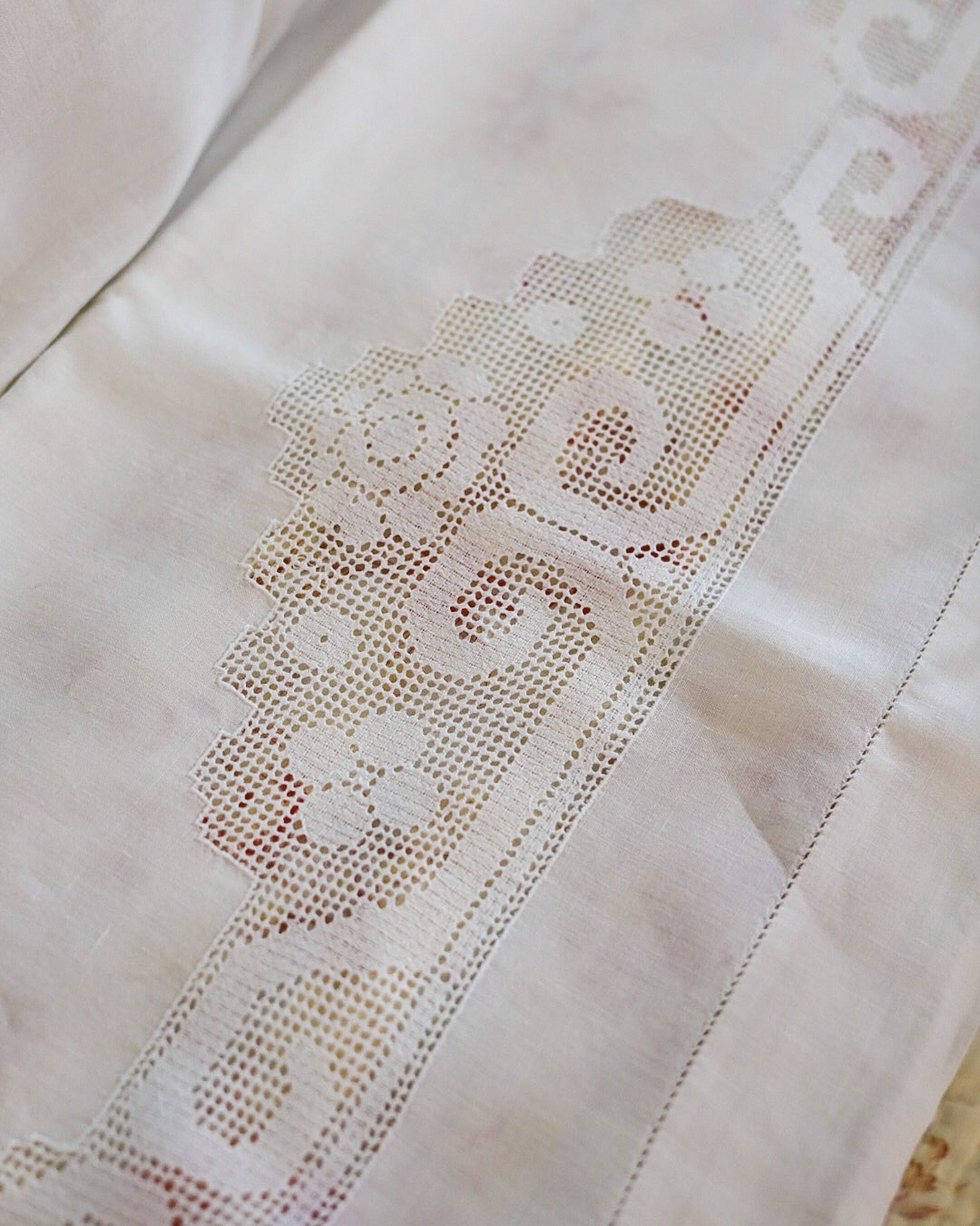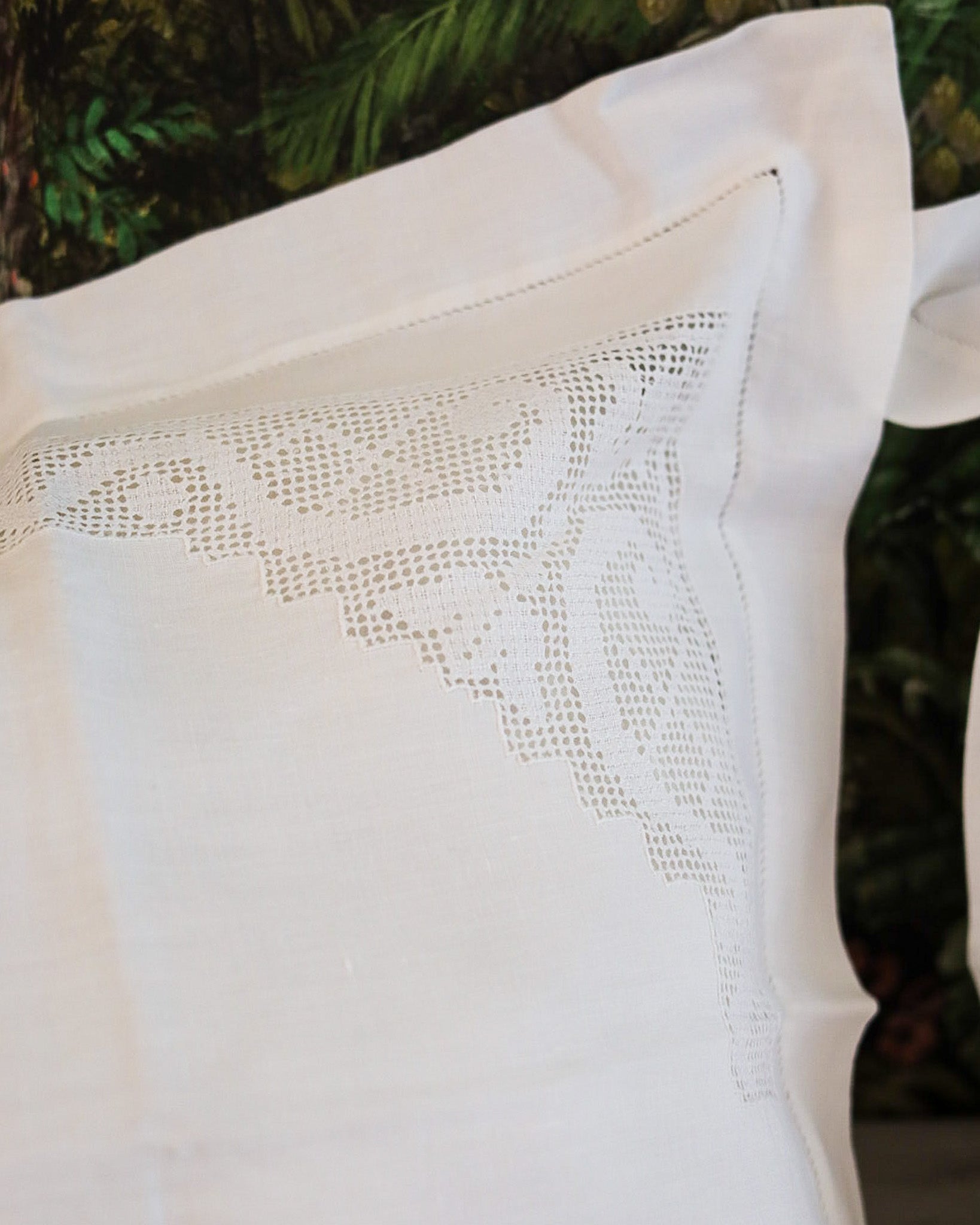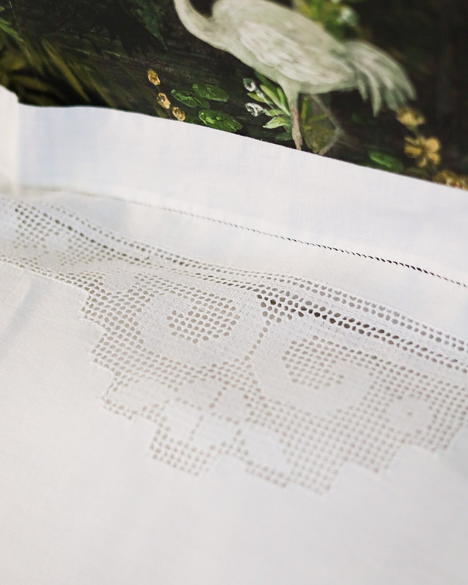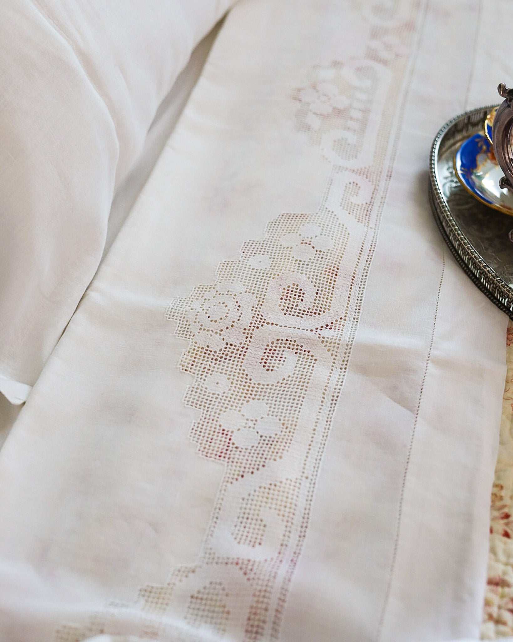 Lenzuolo matrimoniale in lino sfilato siciliano geometrico