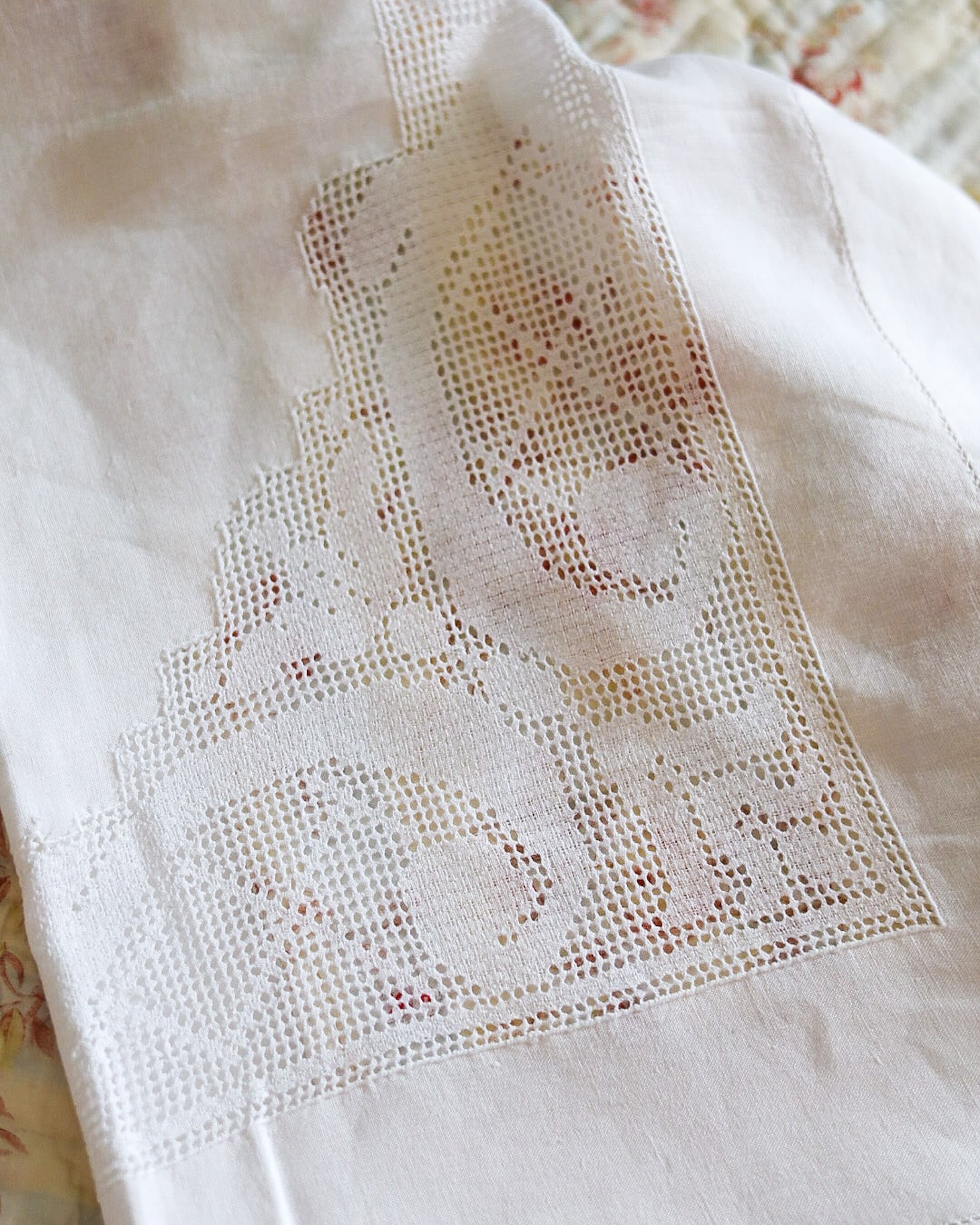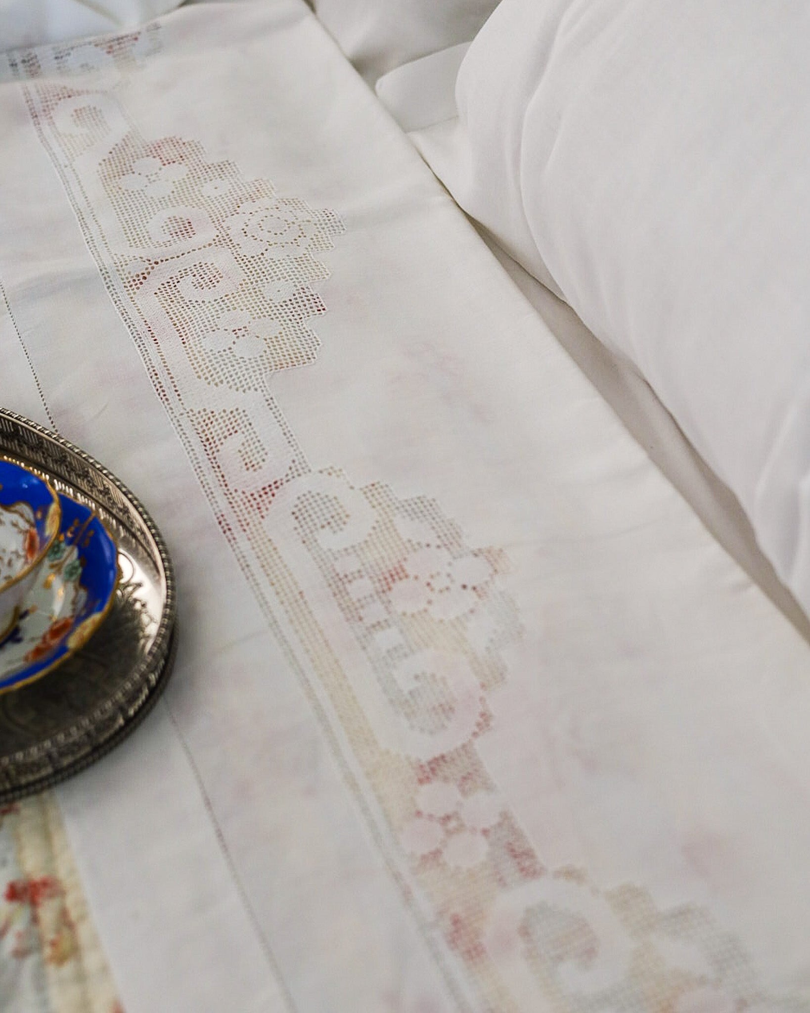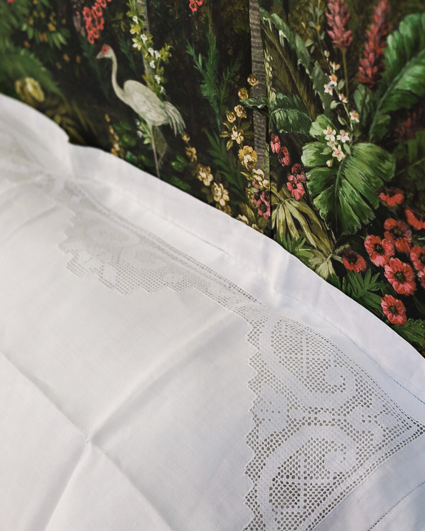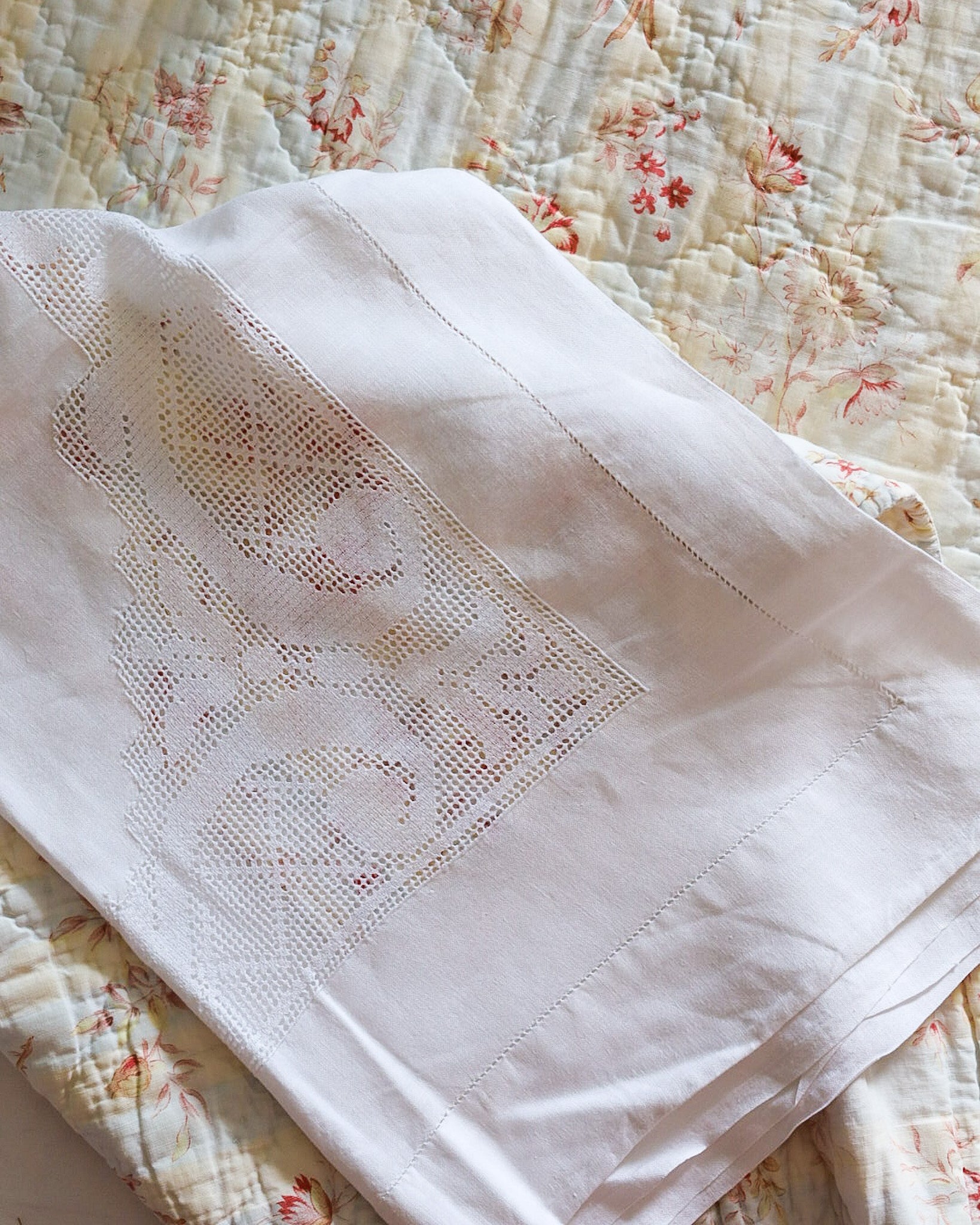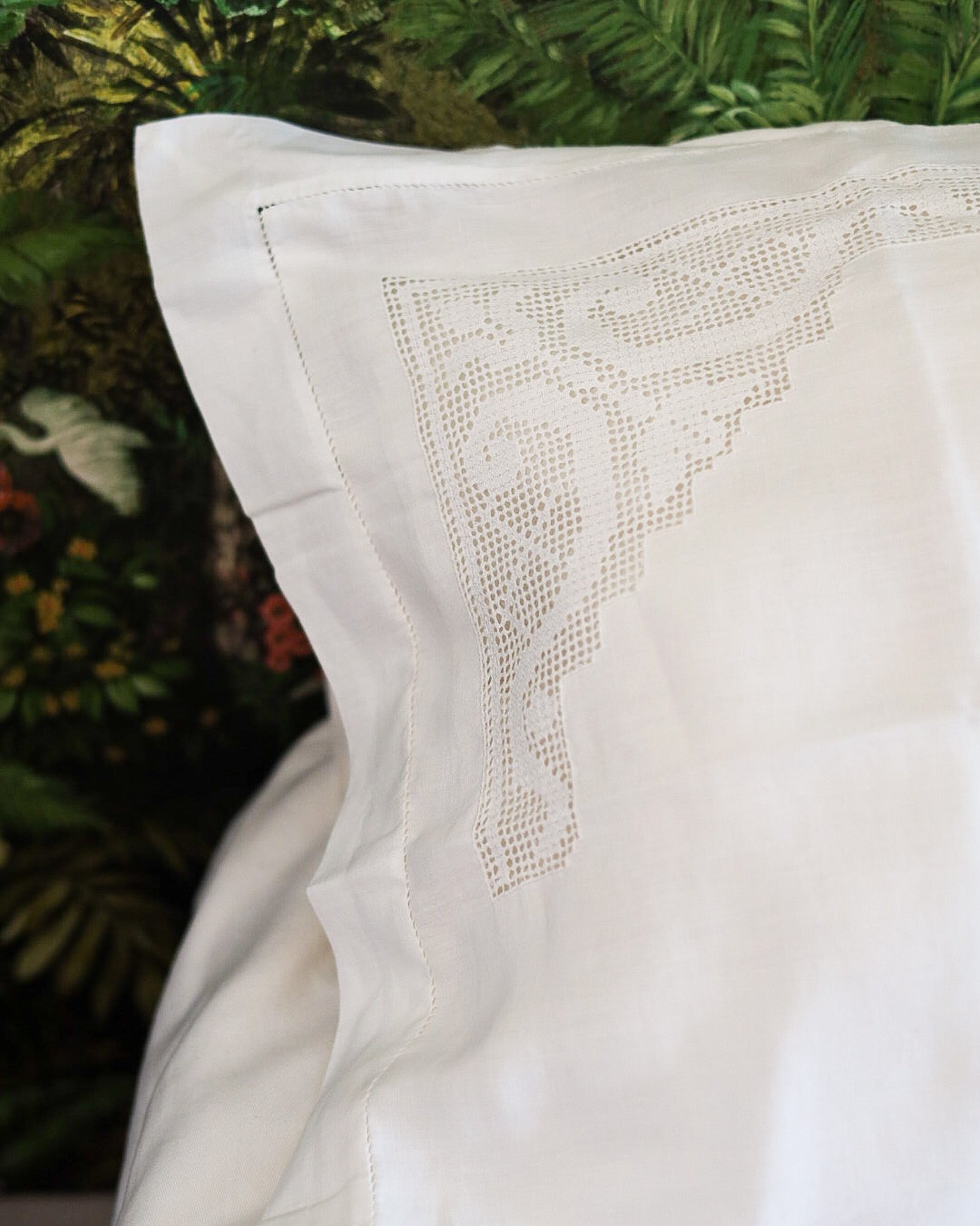 Lenzuolo matrimoniale in lino sfilato siciliano geometrico