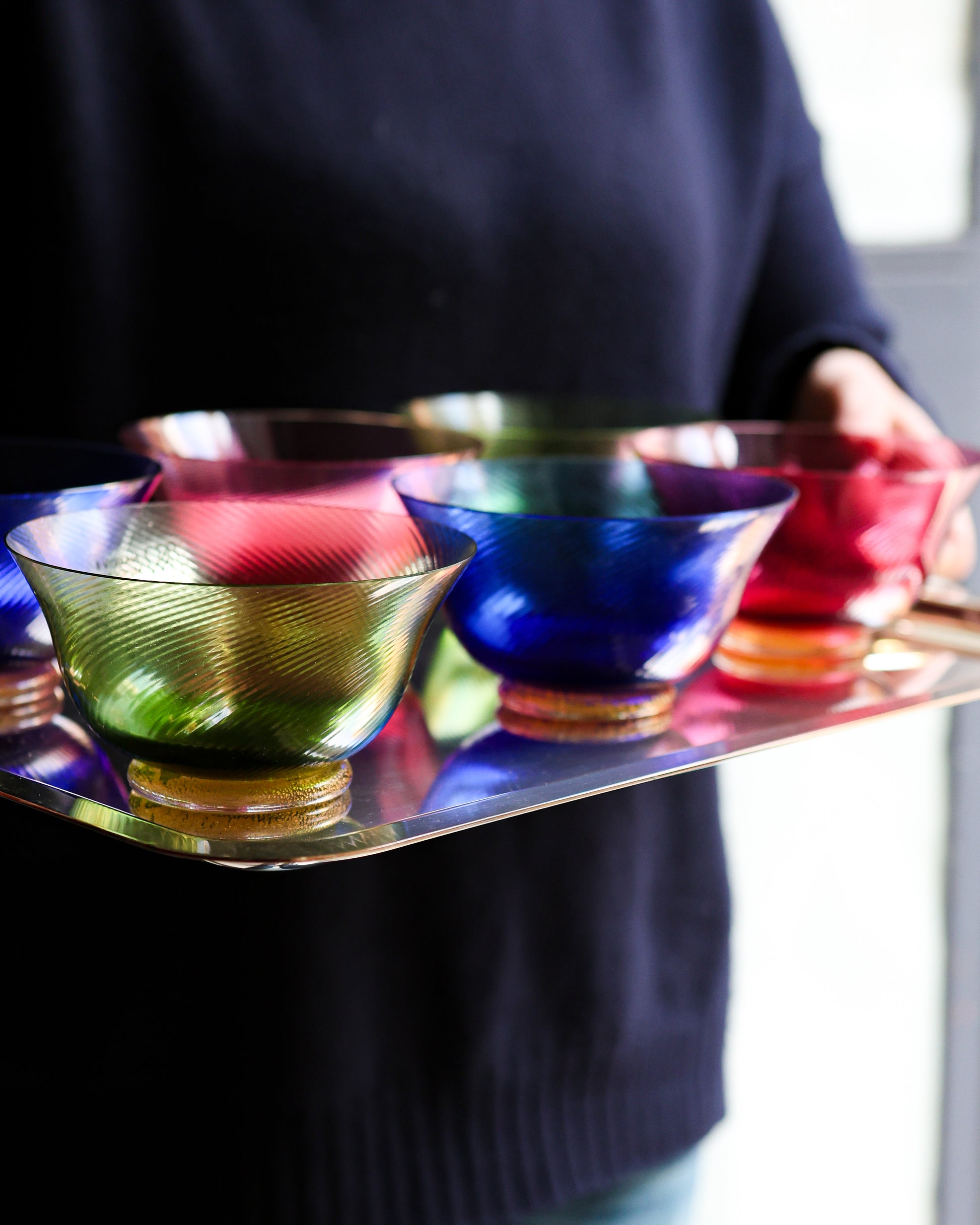Vetro soffiato a mano nei laboratori di Murano Venezia – Ogni prodotto è unico e le eventuali diversità devono essere considerate un valore – uso alimentare – lavabile in lavastoviglie
