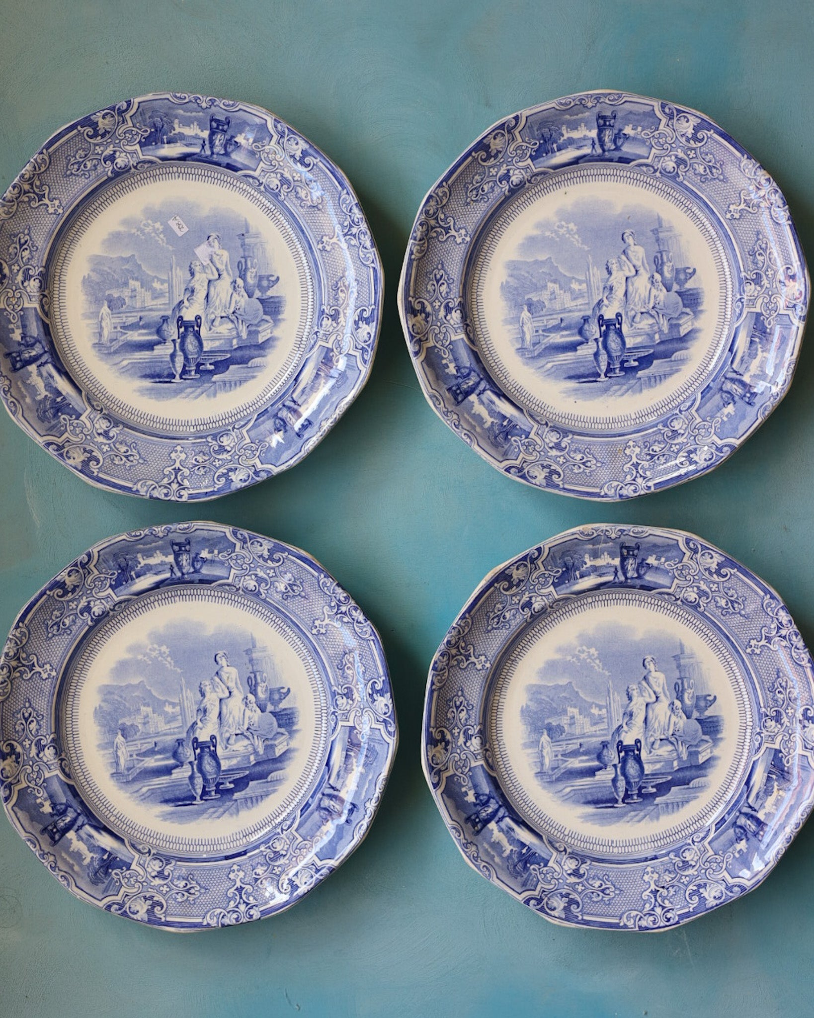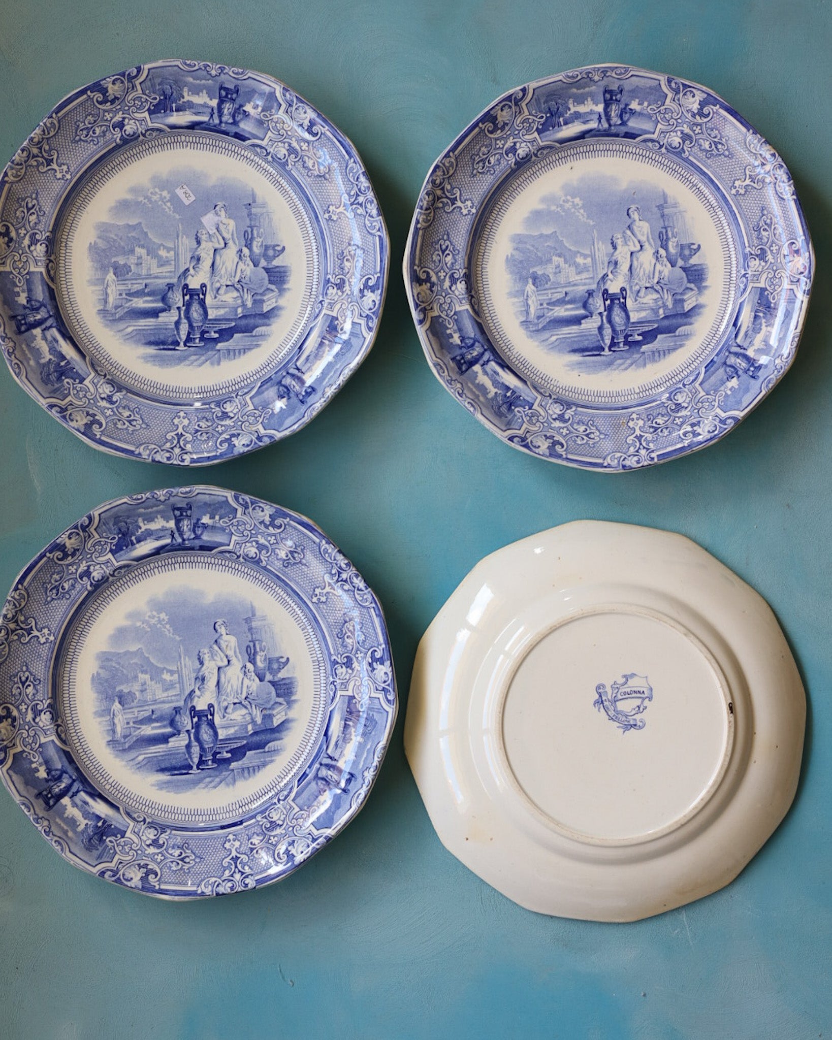 set di Quattro di Piatti Staffordshire in Transferware – Pattern "Colonna", Thomas Goodfellow, Inghilterra, circa 1851-1852