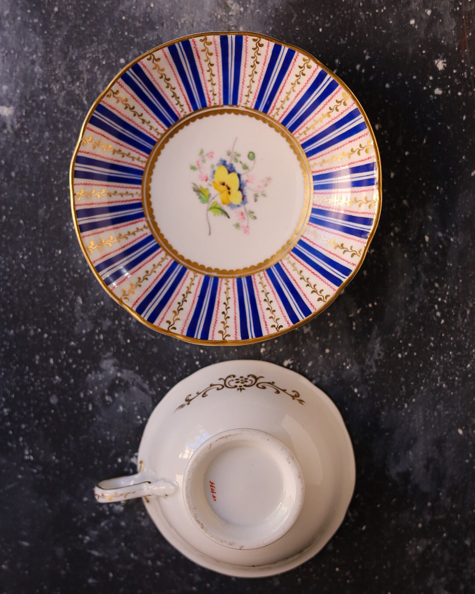 tazza antica primi 800 dipinta a mano a righe