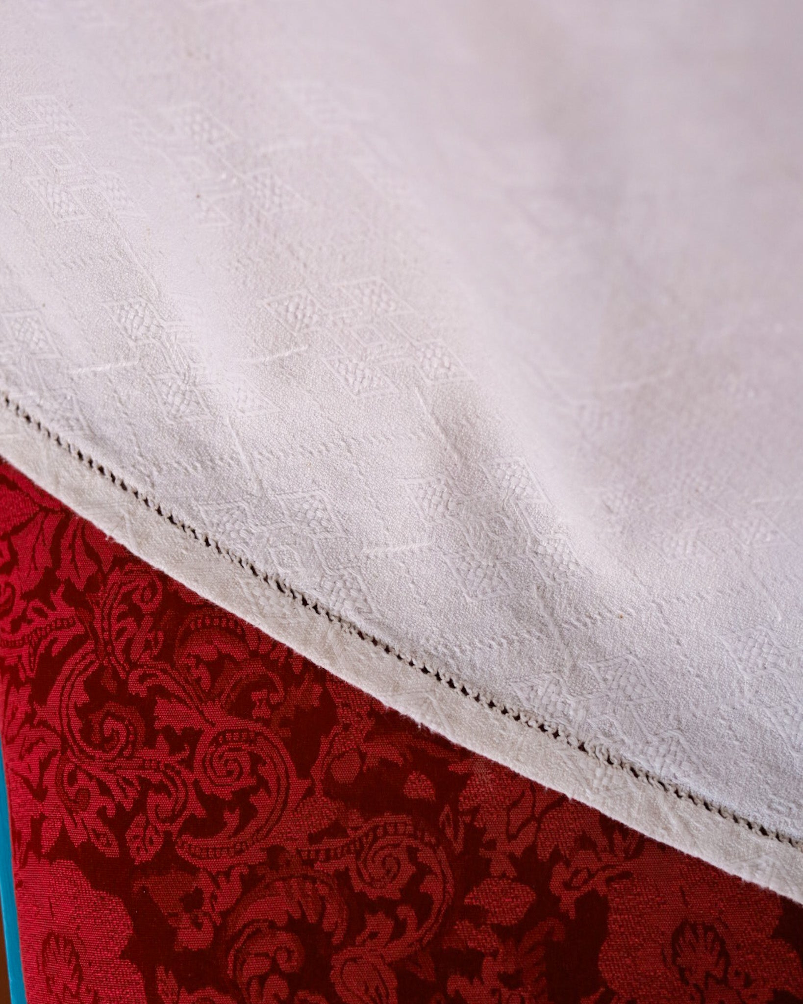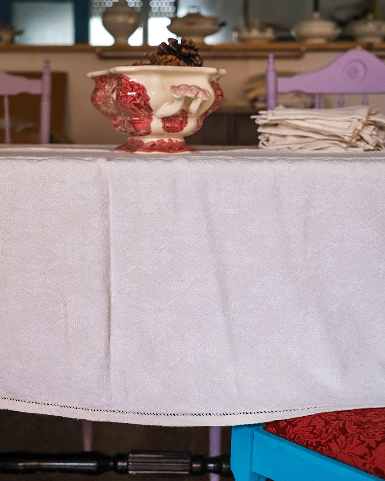 Deliziosa tovaglia in lino jacquard tessuta con telai antichi