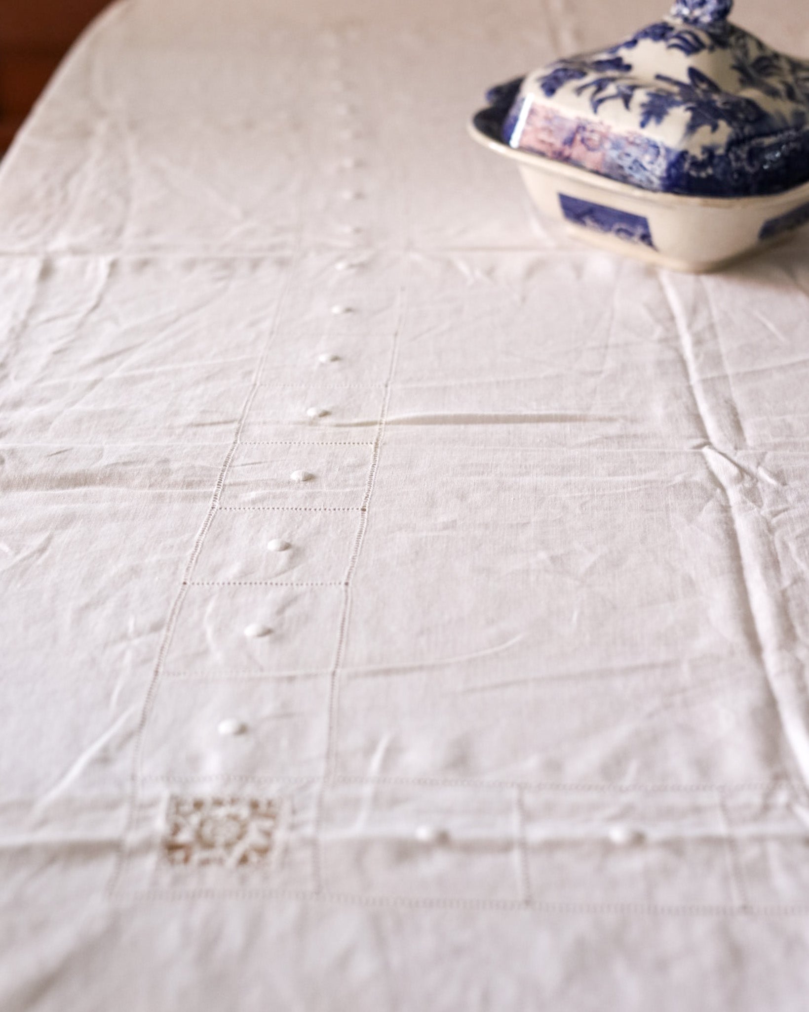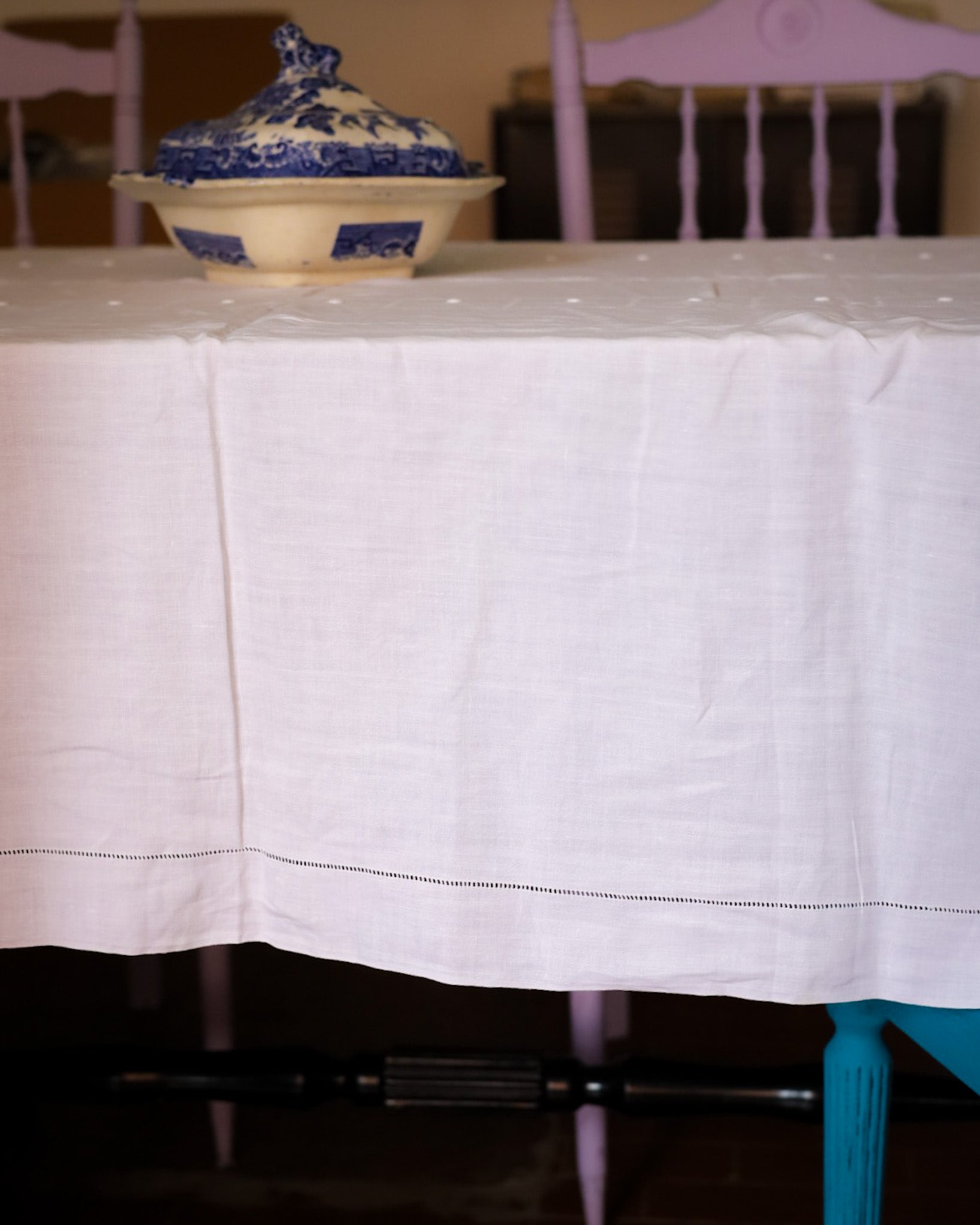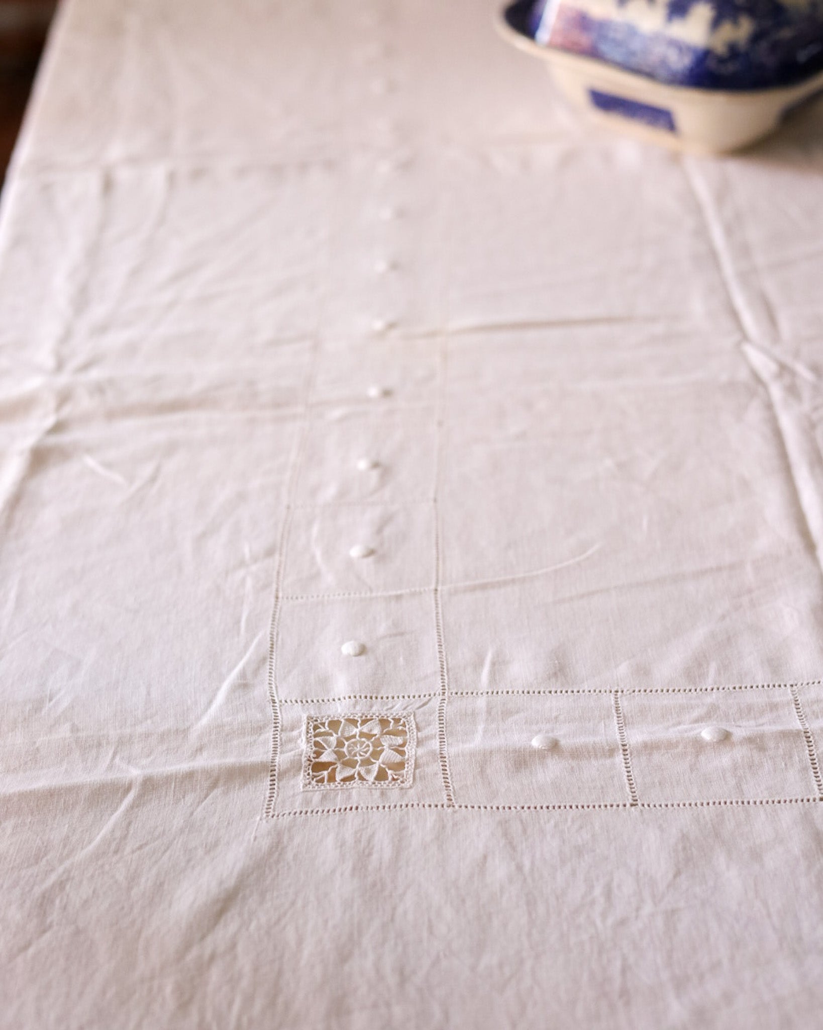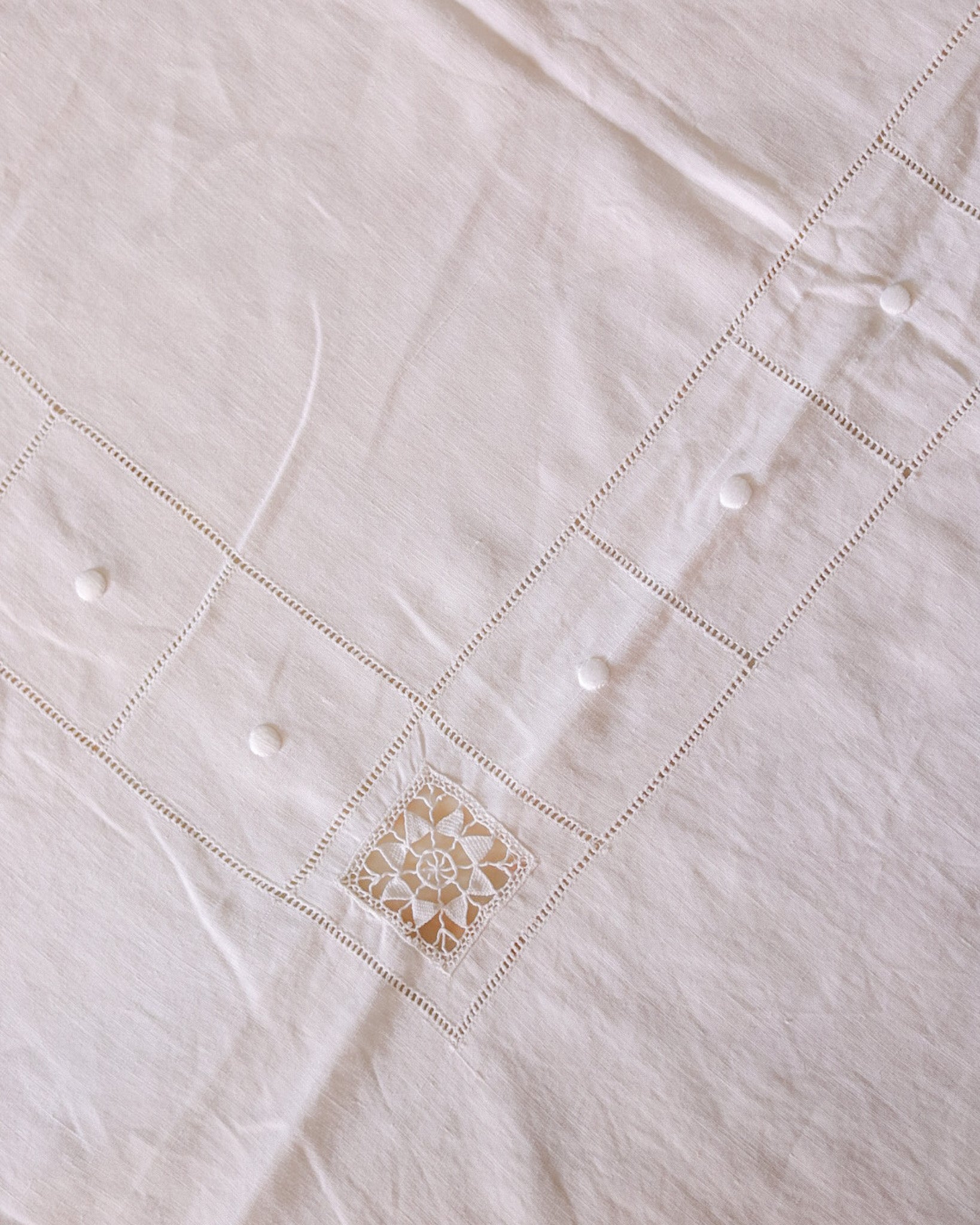 Tovaglia in lino d'olanda con ricamo punto aria