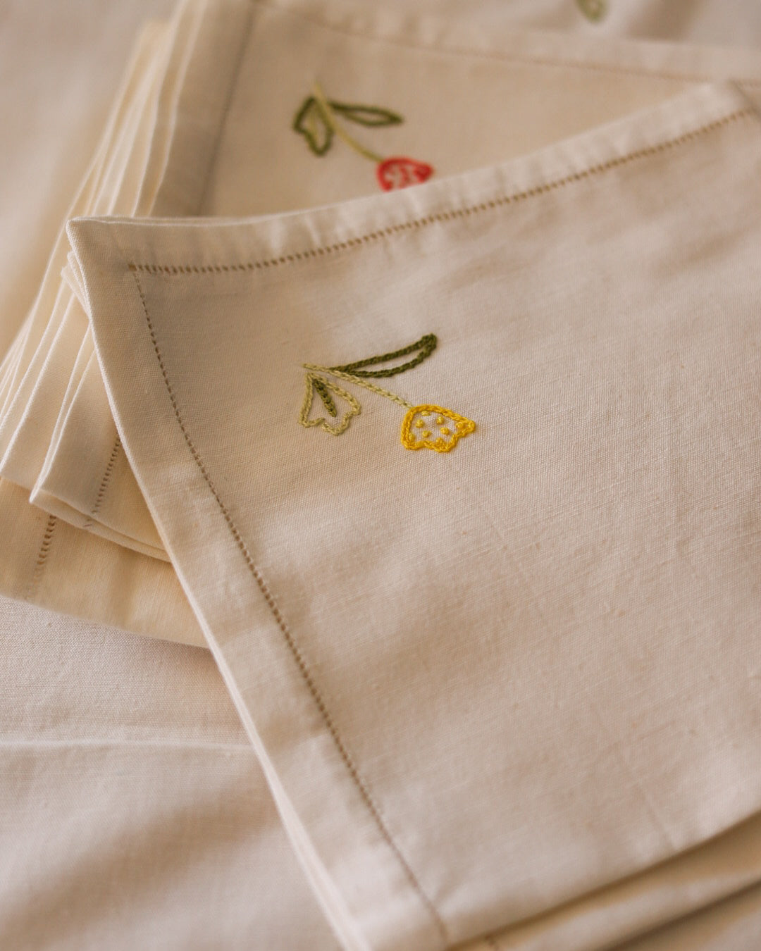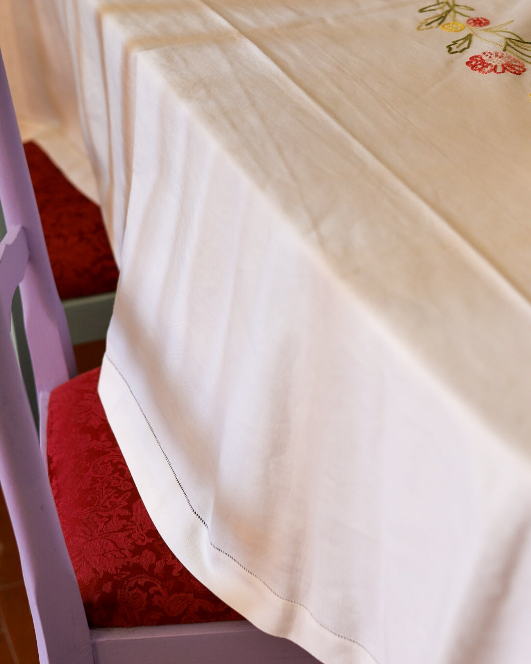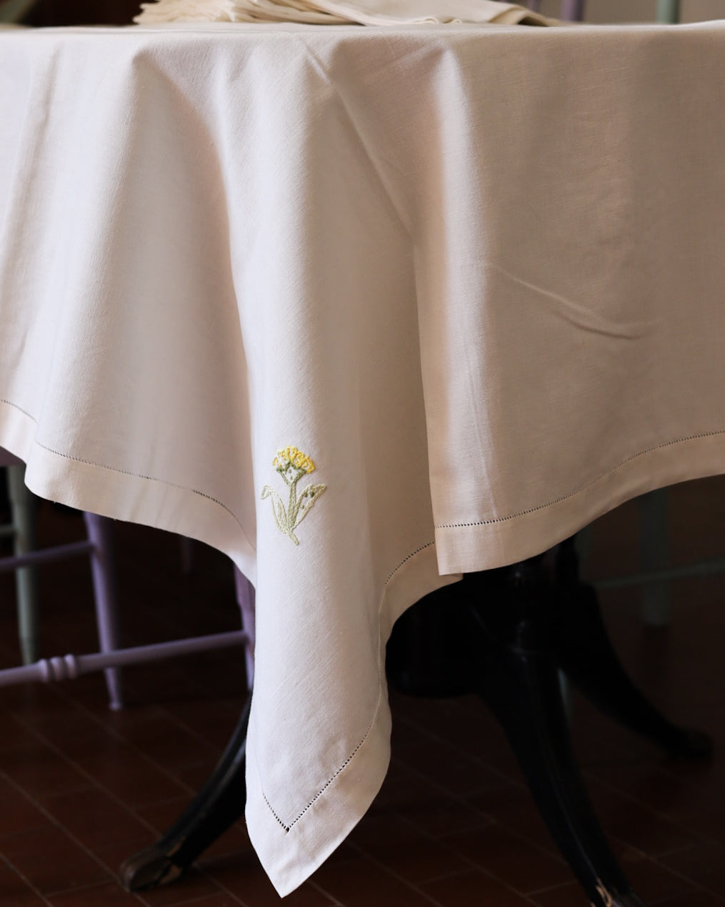 Tovaglia in misto lino con ricamo fiori colorati 12 tovaglioli