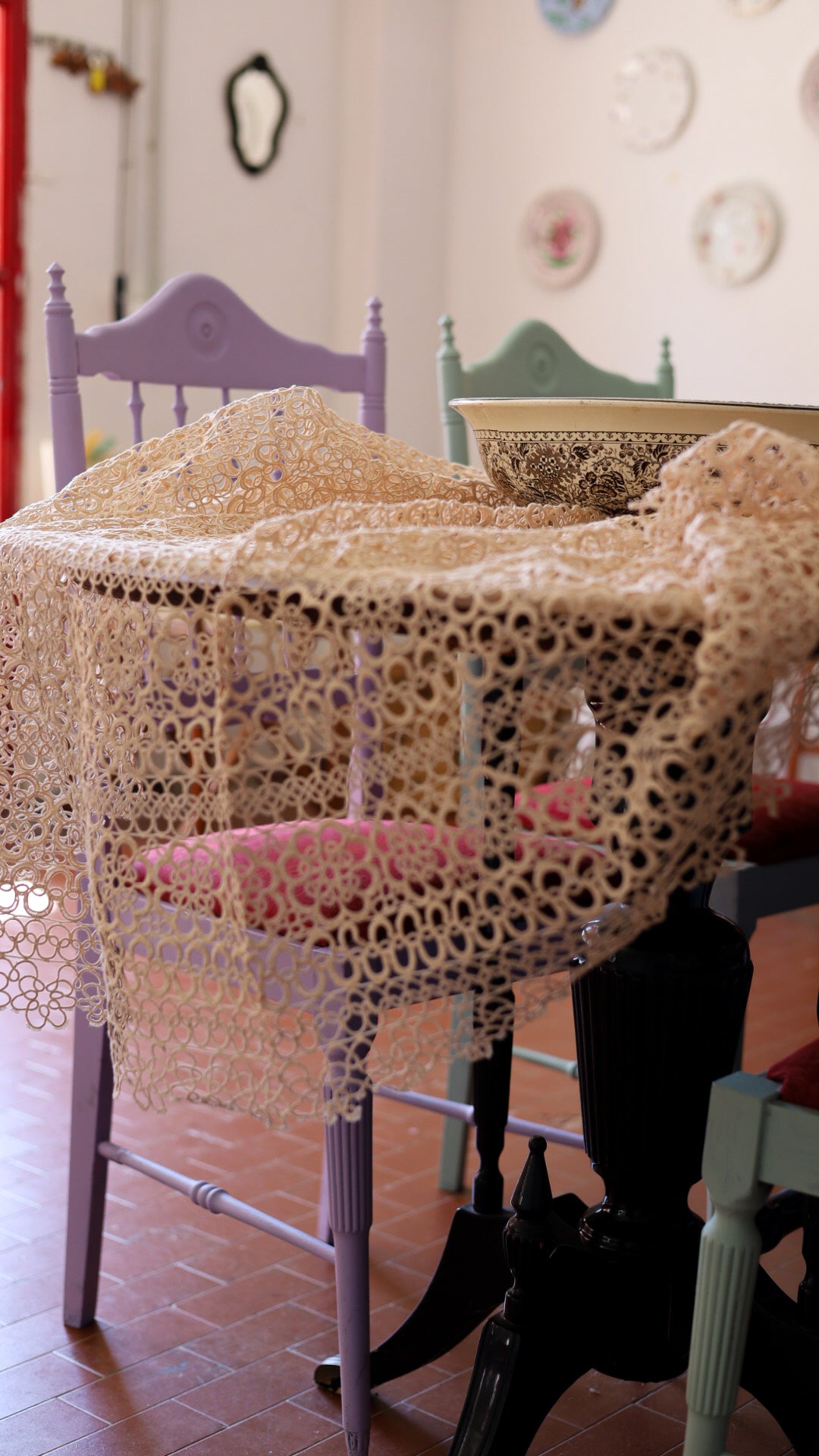 Meravigliosa tovaglia in pizzo chiacchierino avorio