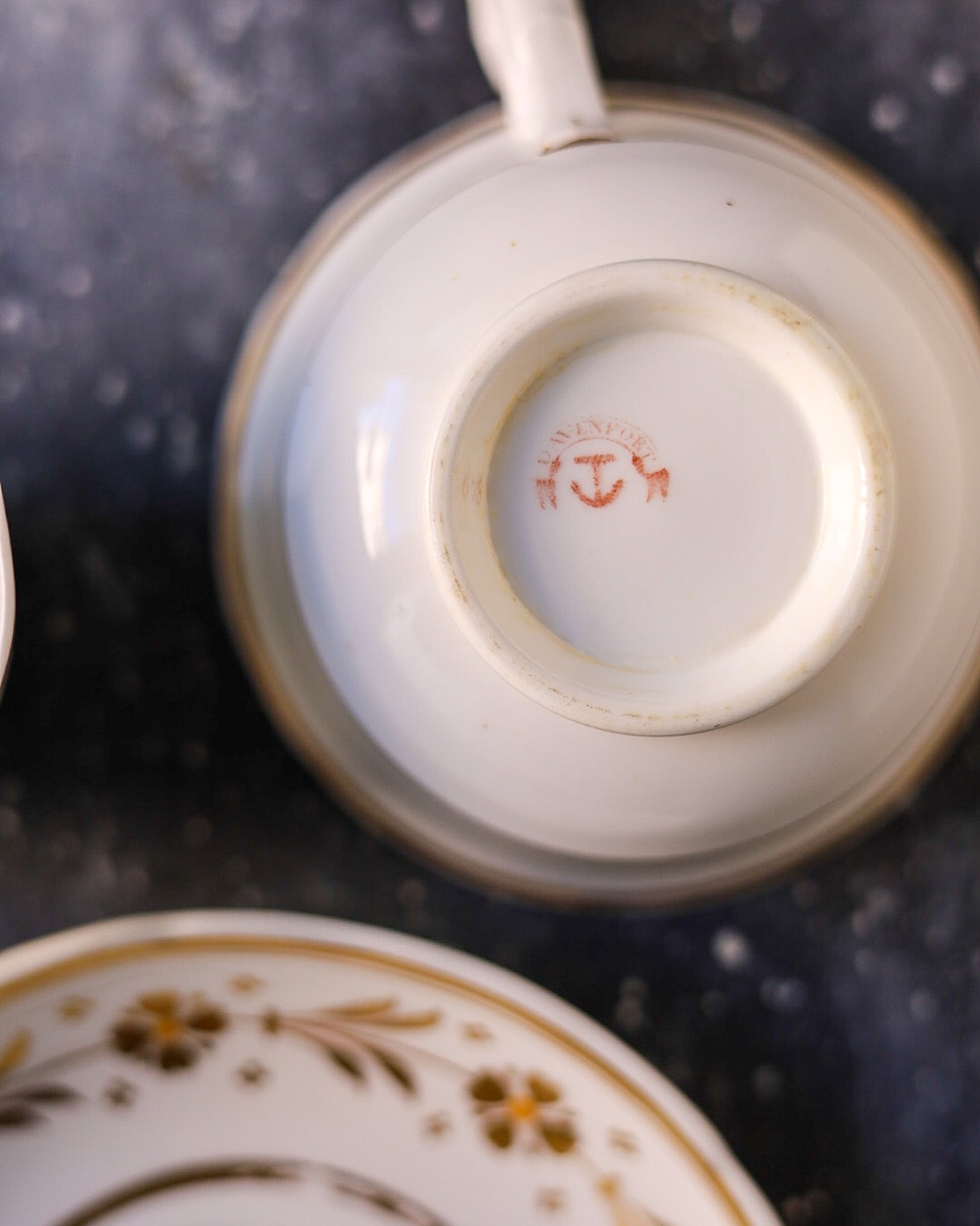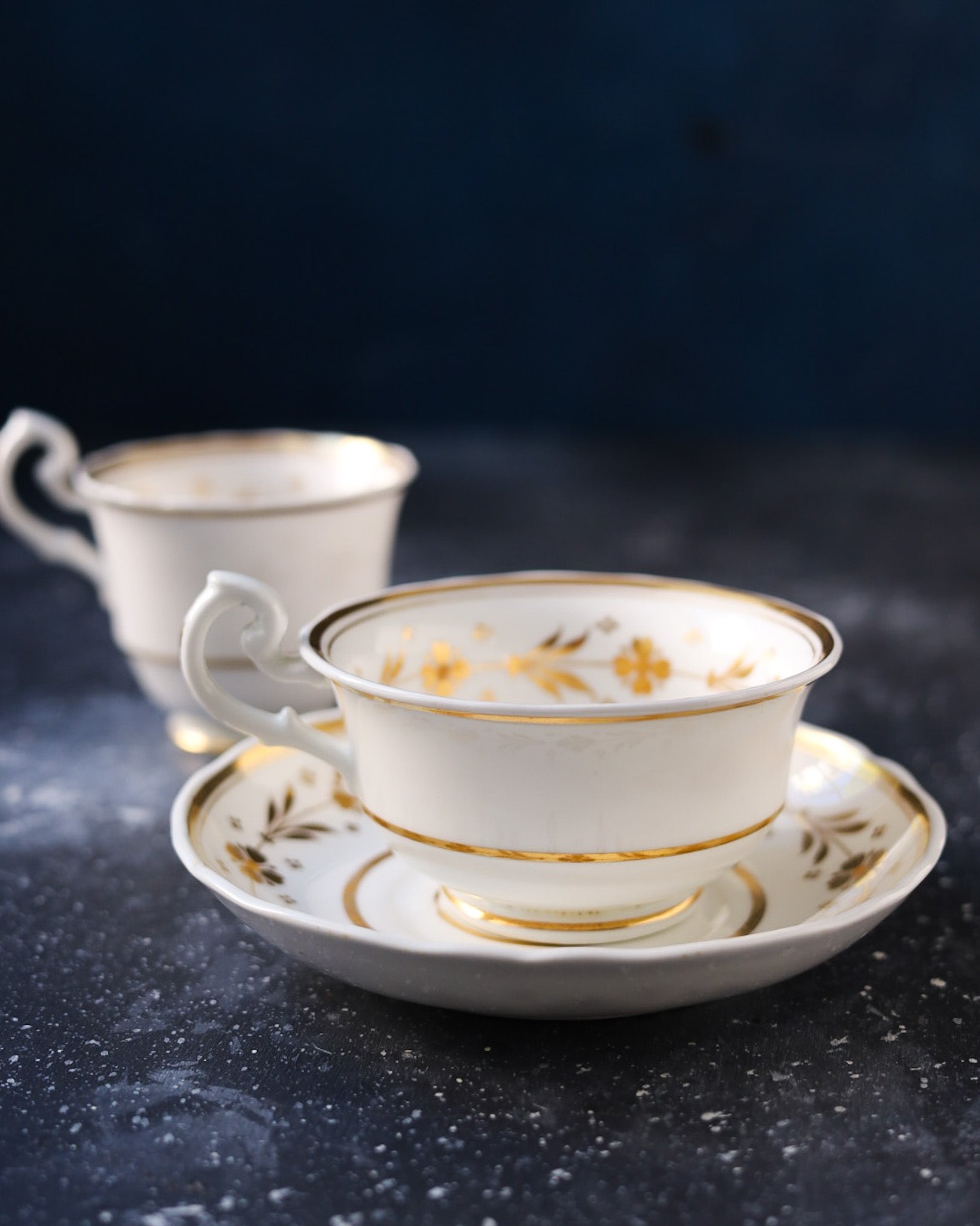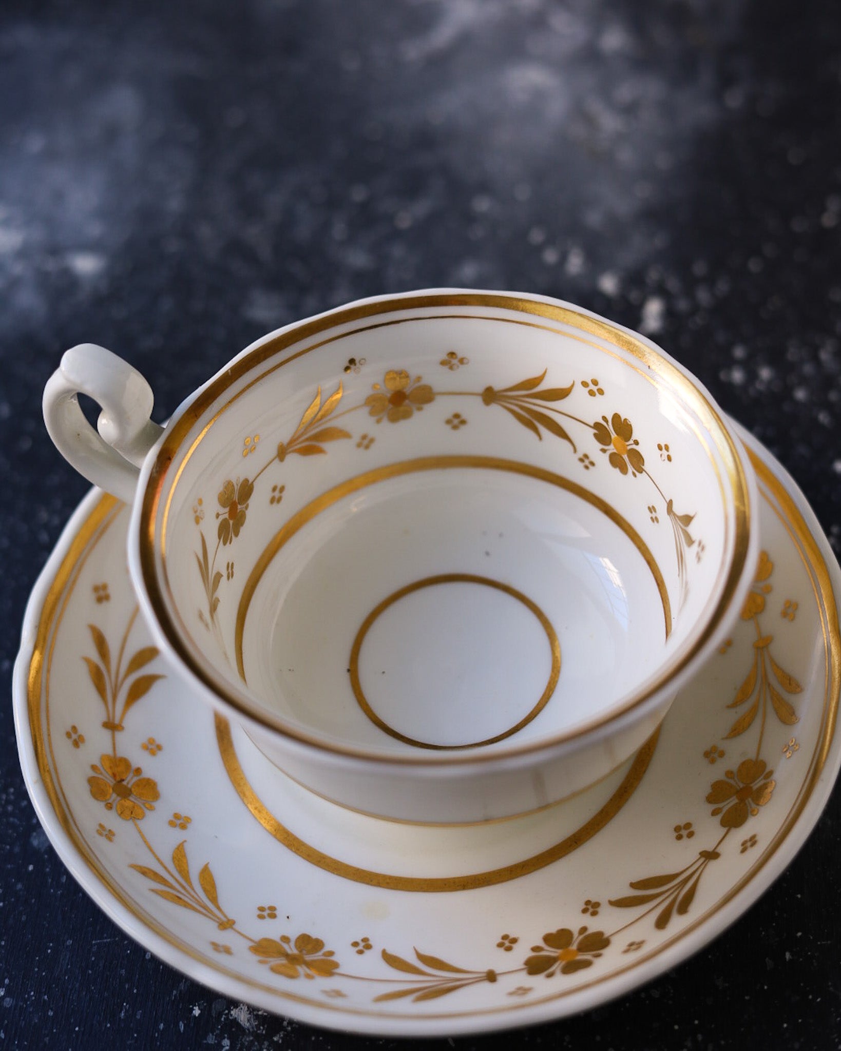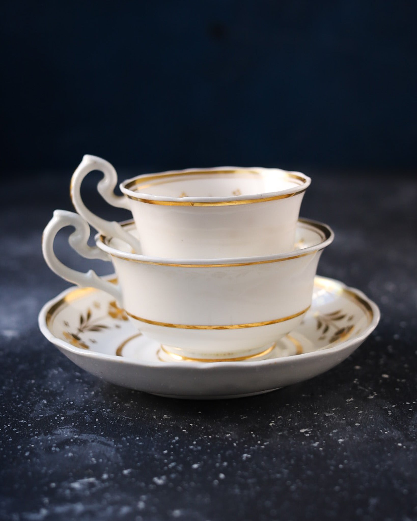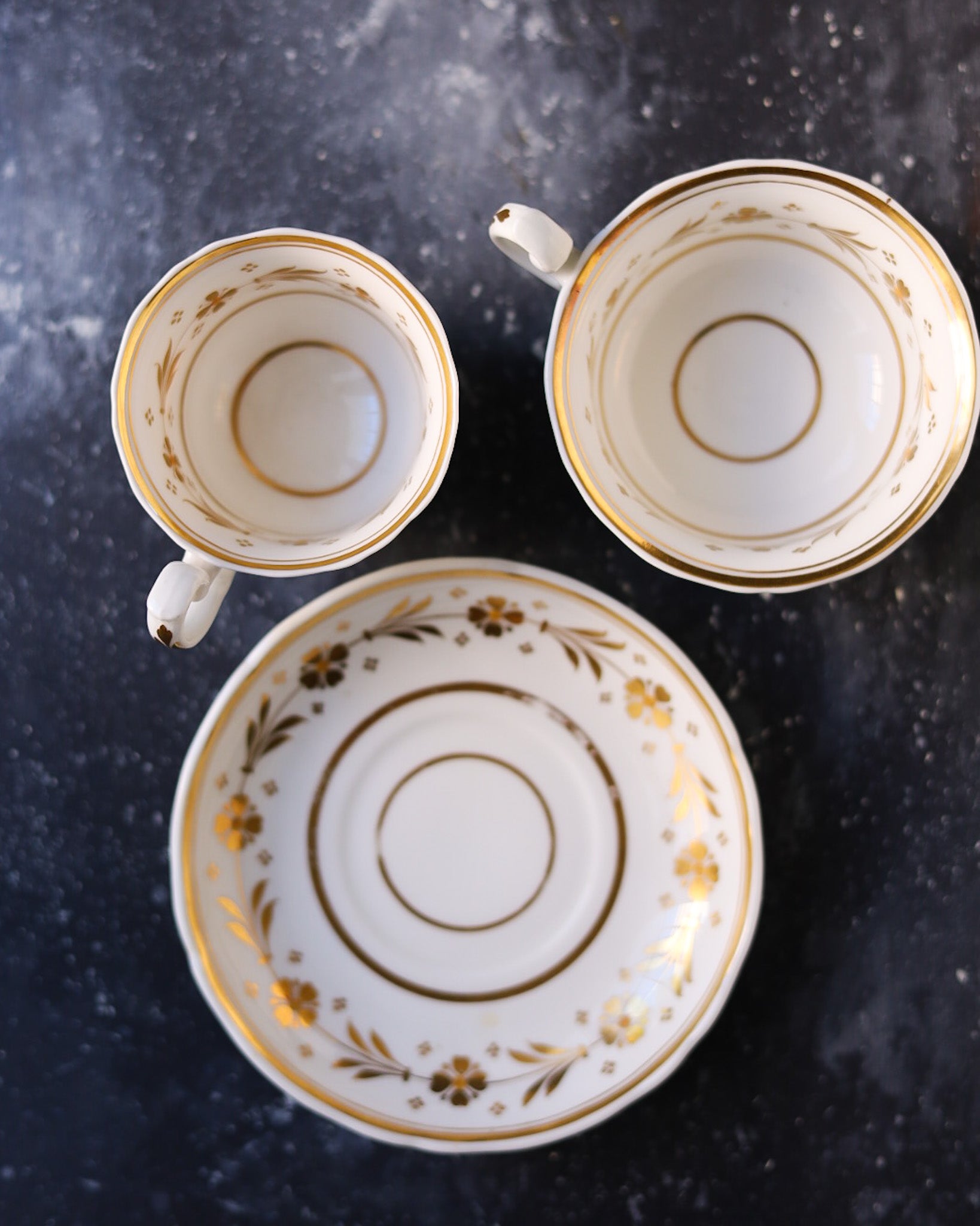 True tris tazze inglesi metà 800 dipinte a mano con oro