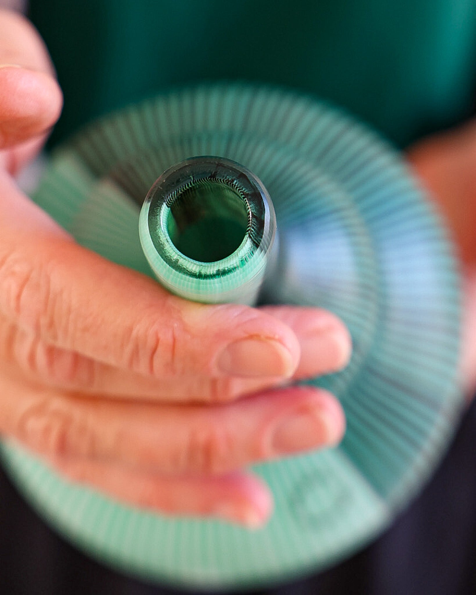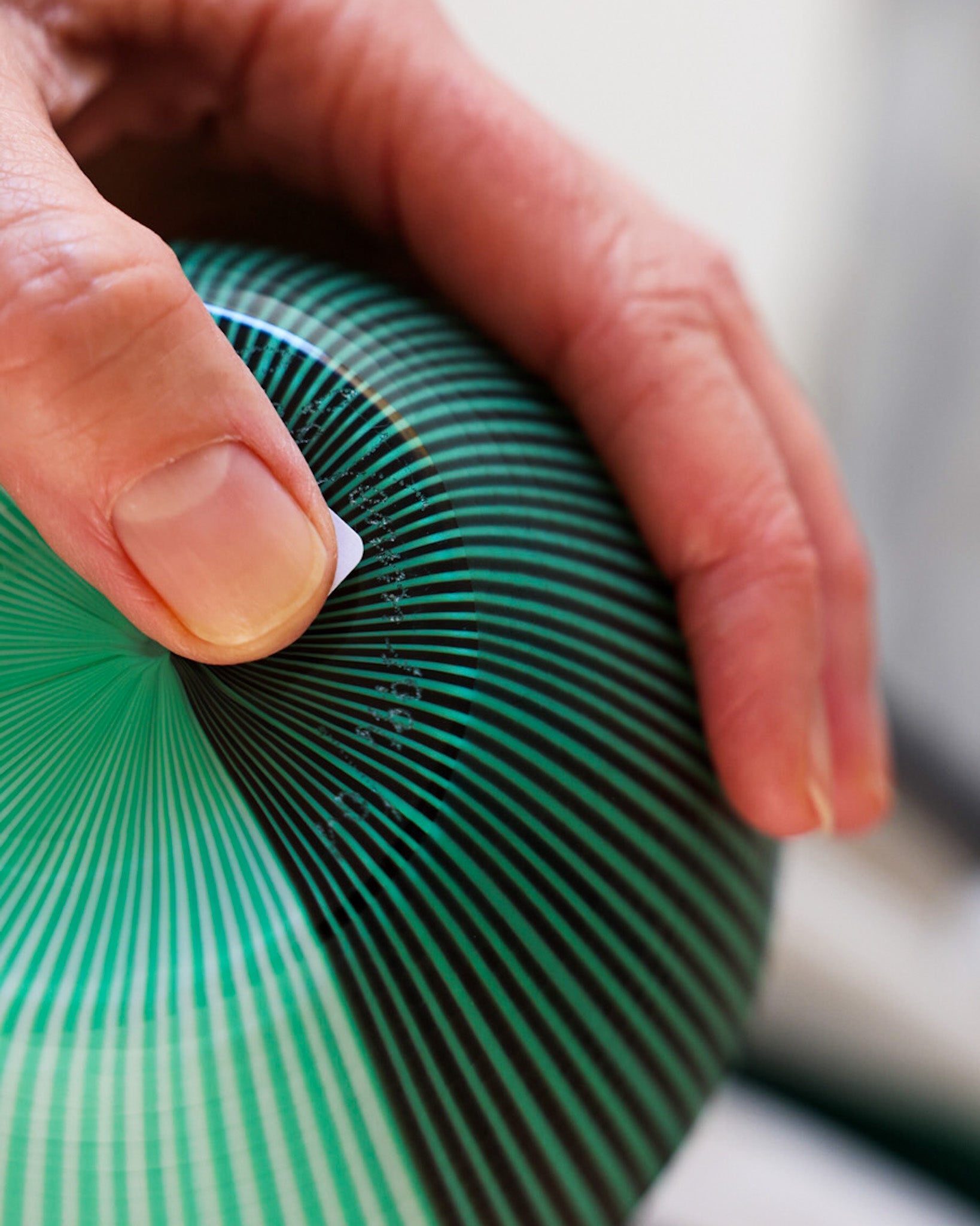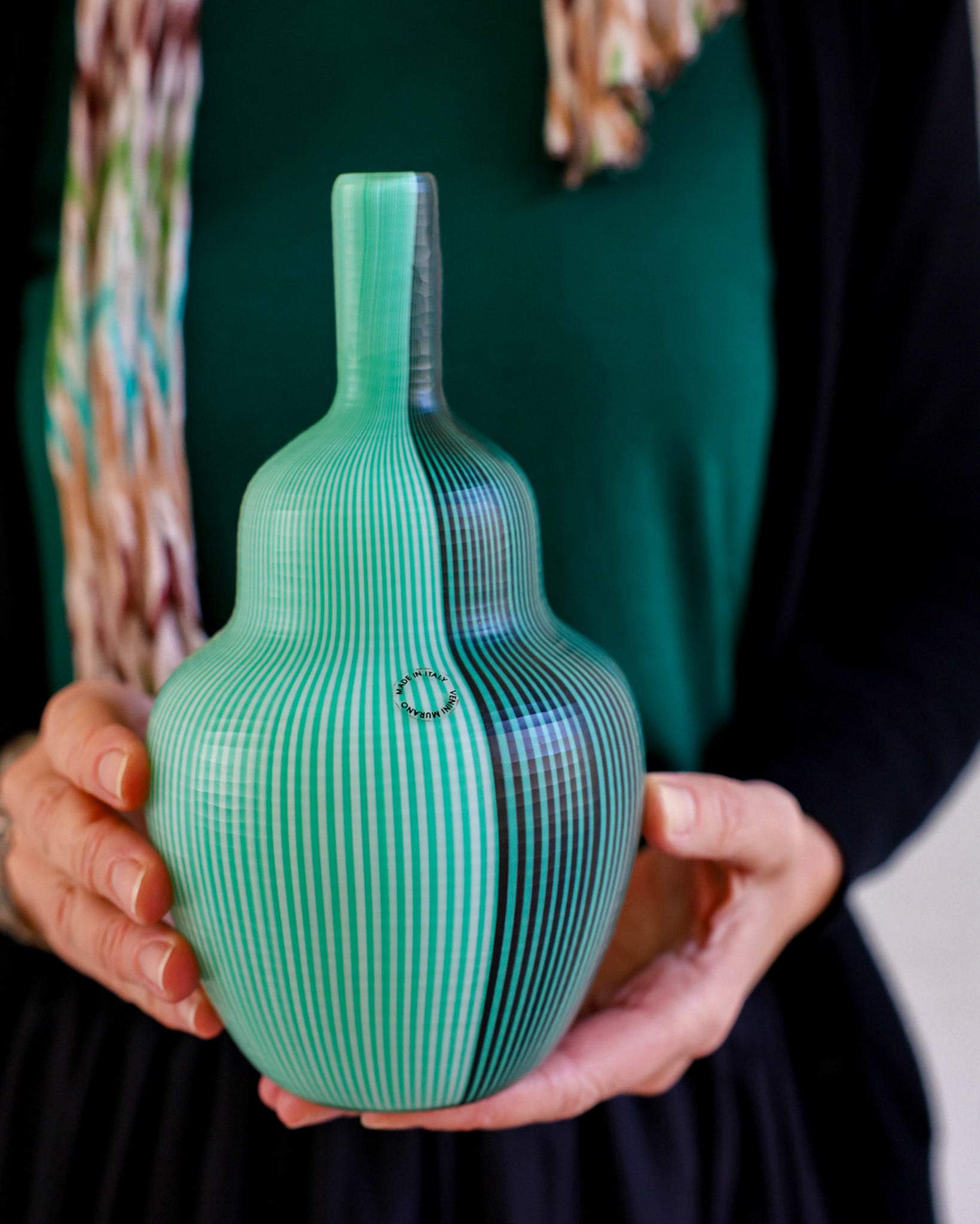 La lavorazione a righe rappresenta uno dei motivi più iconici introdotti negli anni '30 da Carlo Scarpa e rimasto un simbolo distintivo della produzione Venini.